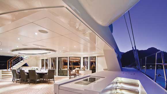 I started from the top deck and worked my way down to the underwater lounge. There were fabrics for pillows, sofas, chairs, window coverings, bedding, ceiling panels and built ins. There were also some new furniture pieces to be specified but the majority of my work was to come up with the fabric themes for each of the rooms. I would work through a floor and then present to my boss for review. Sometimes I was on the money, sometimes I had to replace a fabric or two. Sometimes I had to go back and re-work it all. (Wait a second, no one told me he hated green.) But frustration aside, it was a great experience and I really honed my eye.