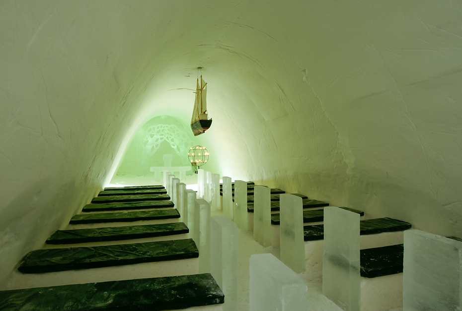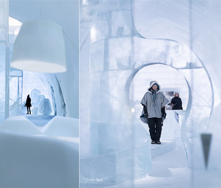 ice-hotel-sweden-new-materials-suite-13When completed, the hotel features a bar, church, main hall, reception area, plus rooms and suites for over 100 guests. Each suite is unique and the architecture of the hotel is changed each year since it is rebuilt from scratch. Every year, artists submit their ideas for suites, and a jury selects about 50 artists to create the church, icebar, reception, main hall and suites. When spring comes, everything melts away and returns to the Torne River.